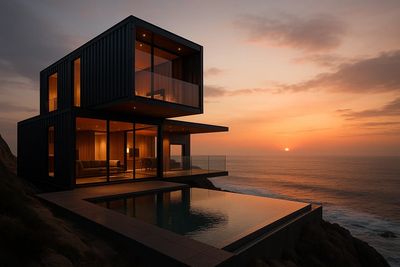 Our homes also embrace the green side of building — reducing carbon footprint and often designed to operate off-grid or with minimal reliance on the grid. We don’t build a container dropped on a bare lot with a set of stairs. We build complete homes integrated with decks, patios, pergolas, outdoor kitchens, and landscaping.